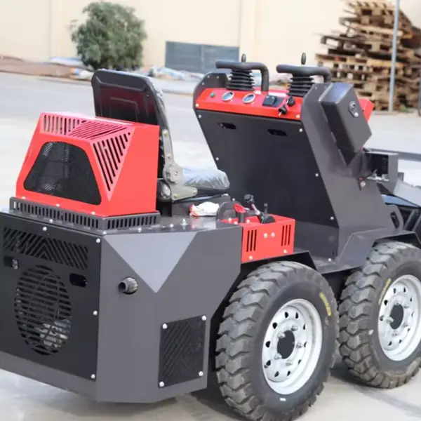 Šasija našega zmogljivega električnega mini mini nakladalca ima posebno zasnovo drsnega nakladalca, ki omogoča 360-stopinjsko obračanje znotraj lastnega odtisa. Ta manevrska sposobnost omogoča nakladalcu učinkovito delovanje v zaprtih delavnicah, ozkih skladiščnih prehodih in med stanovanjskimi stavbami.